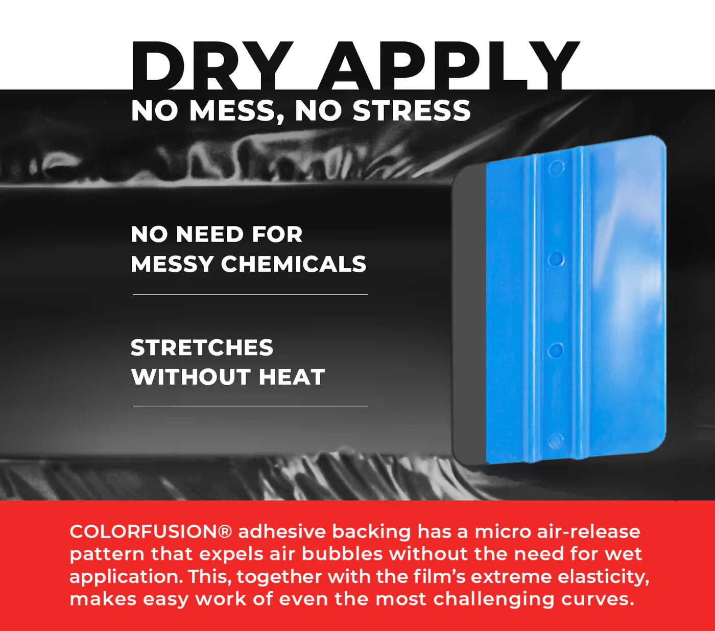 ColorFusion®은 열 활성화 방식의 제거 가능한 접착제를 사용하여, 차량 도장의 클리어 코트를 침식하거나 녹이지 않습니다.