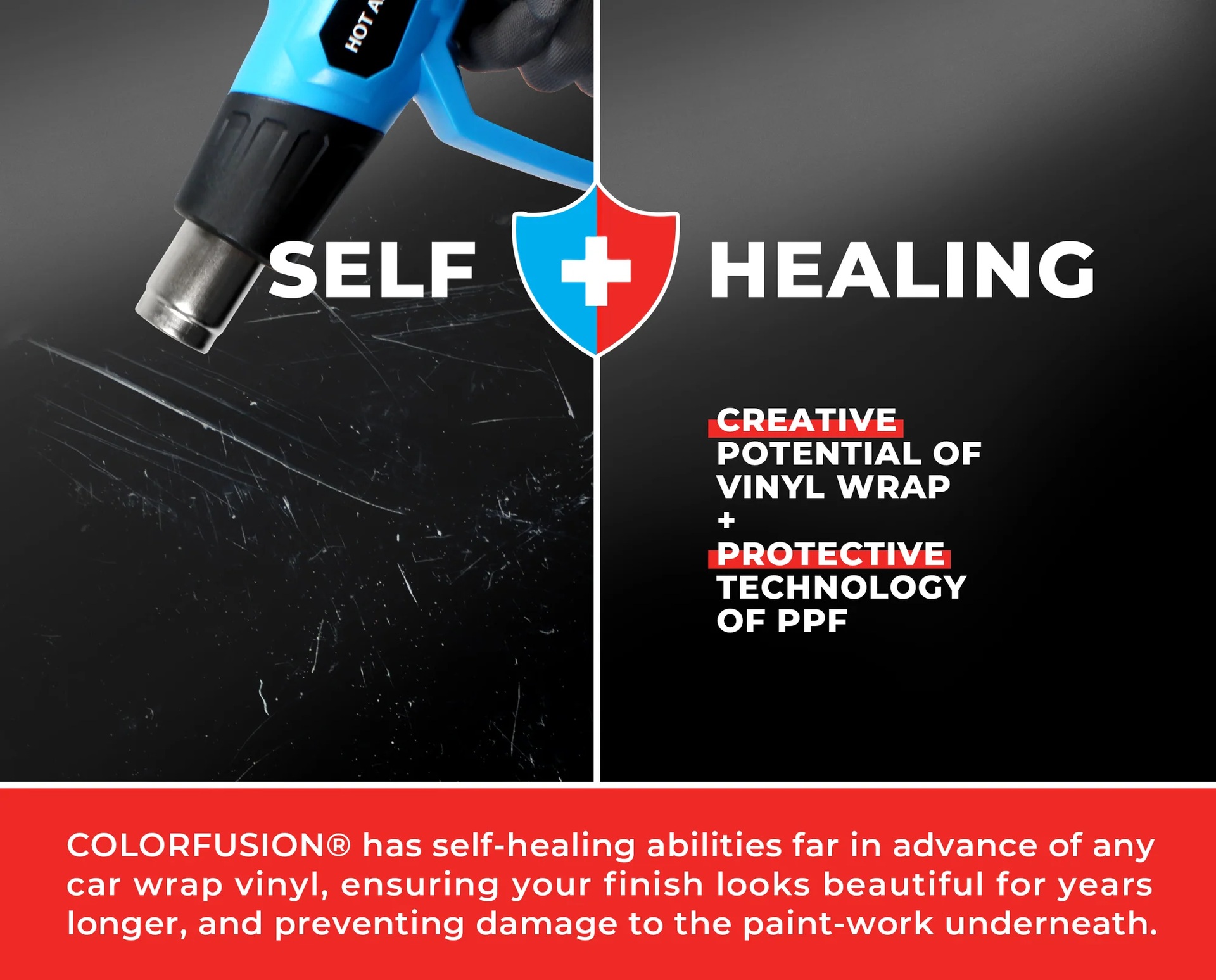 VViViD의 ColorFusion®은 페인트 보호 필름(PPF)의 뛰어난 내구성과 VViViD가 자랑하는 업계 최고 수준의 랩 필름 디자인을 결합한 제품으로,